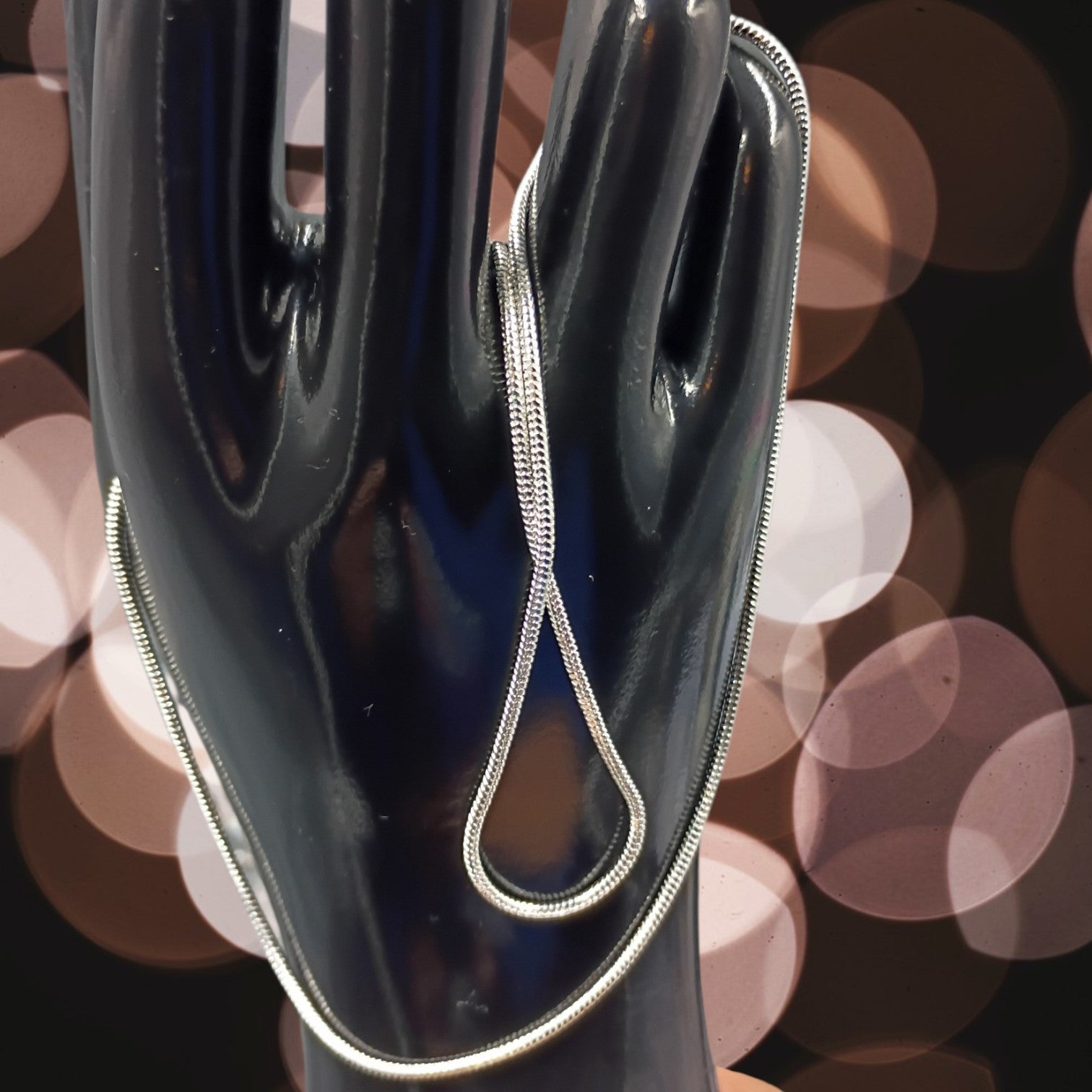 Sleek, shiny, and ready to shine—this 925 sterling silver snake chain is your new best friend. At 1.7mm thick and 18 inches long, it's the perfect length for layering or wearing solo as a statement piece.