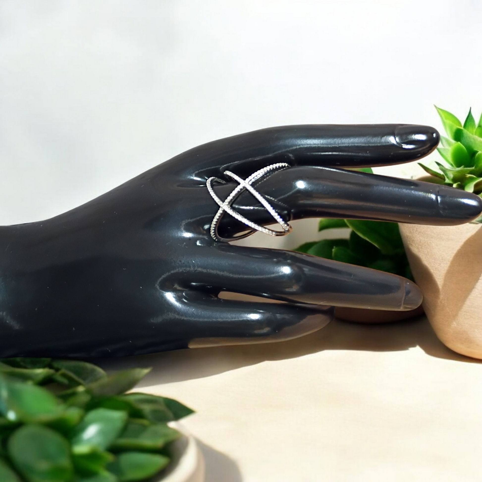 This Double X white cubic zirconia 925 silver ring is crafted with high-quality features a size 6.5. The stunning white cz adds a touch of elegance to any outfit. Made with precision and style, this ring is a must-have for any jewelry collection.