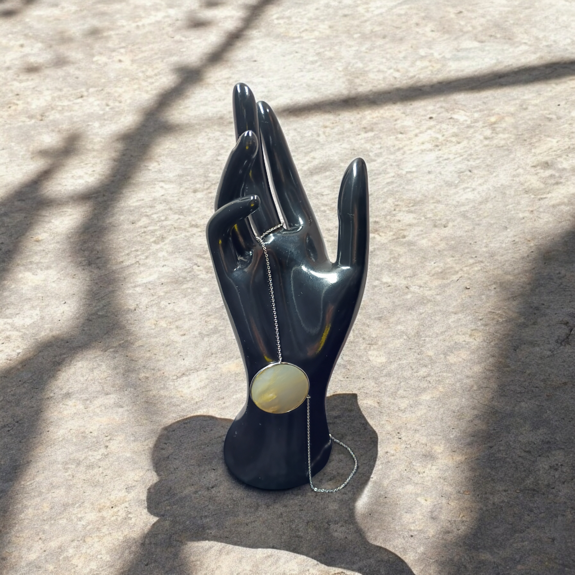 Enhance your style with our Mother of Pearl pendant necklace. This timeless piece is made with 925 silver, providing durability and elegance. The necklace also features an adjustable extender, ensuring a perfect fit from 16"-20". Elevate any outfit with this versatile and chic accessory.