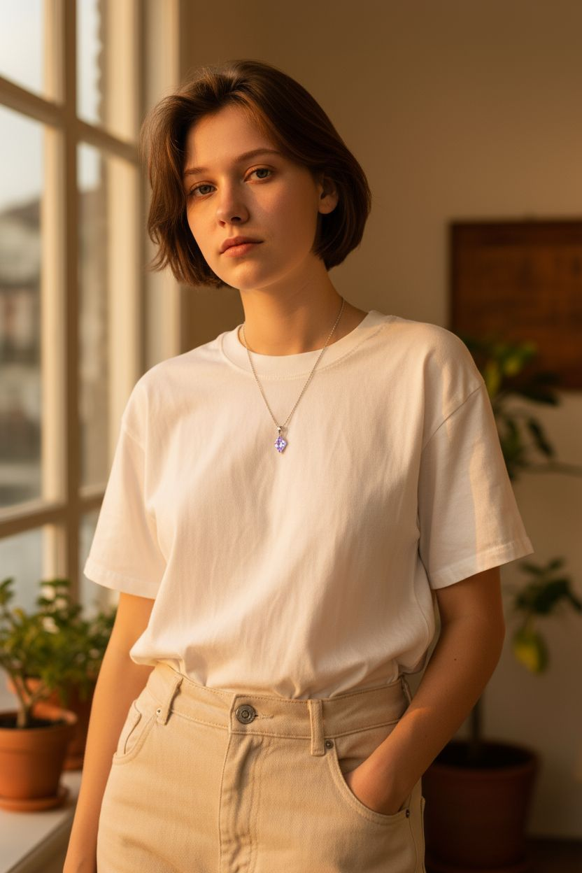 This 925-silver purple amethyst pendant, measuring approximately 1 inch in length and 0.5 inches in width, features a rich, vibrant stone that captures a deep, elegant hue. Its compact dime-size design is enhanced by a half-inch drop from the bale, providing subtle movement and refined wearability. Perfect for adding a touch of sophisticated color to any jewelry collection.