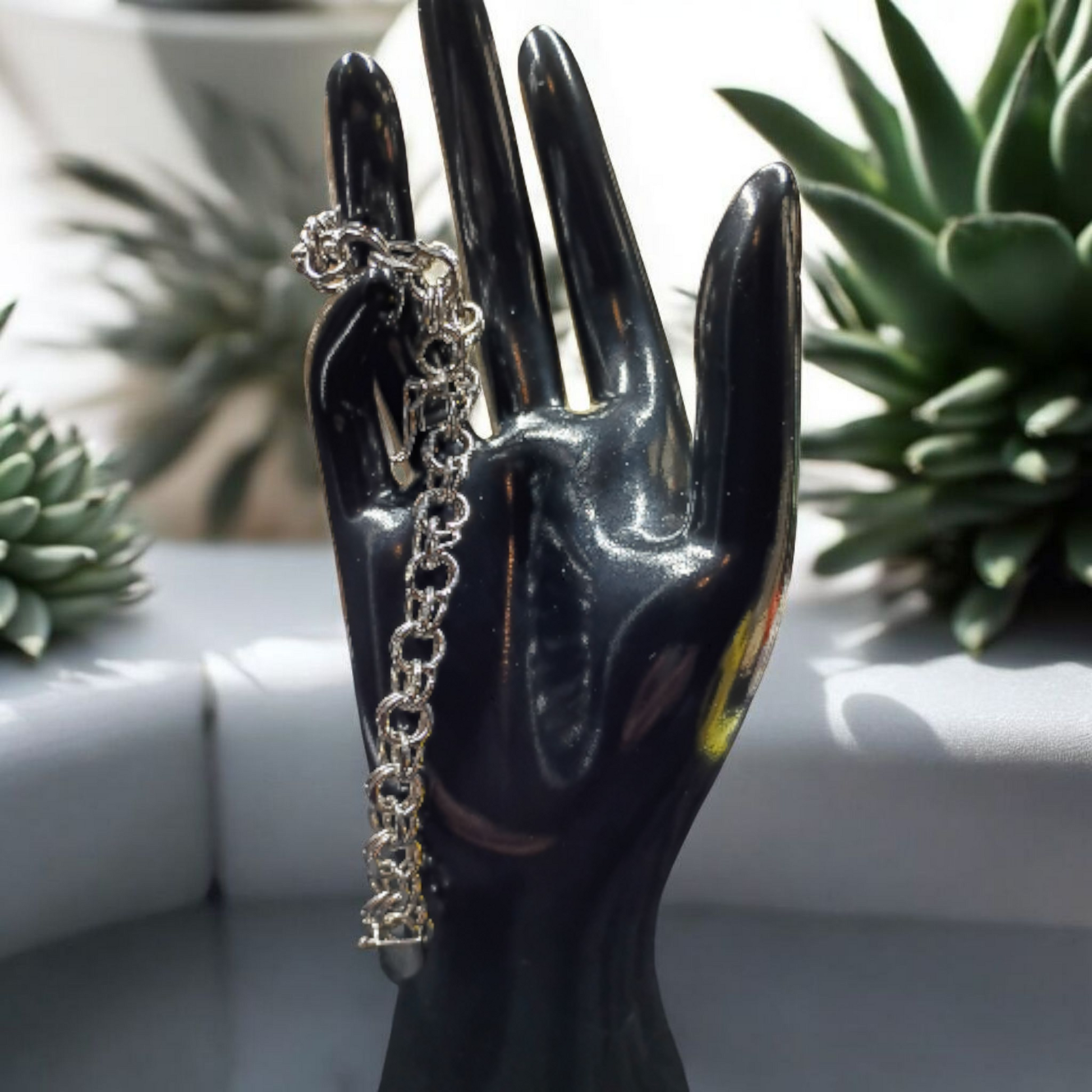 Crafted from high-quality sterling silver, this double link charm bracelet features a refined 9.2mm link design, offering both durability and elegant style. With a 6.75-inch length, it fits comfortably on the wrist, providing an ideal base for adding personalized charms.
