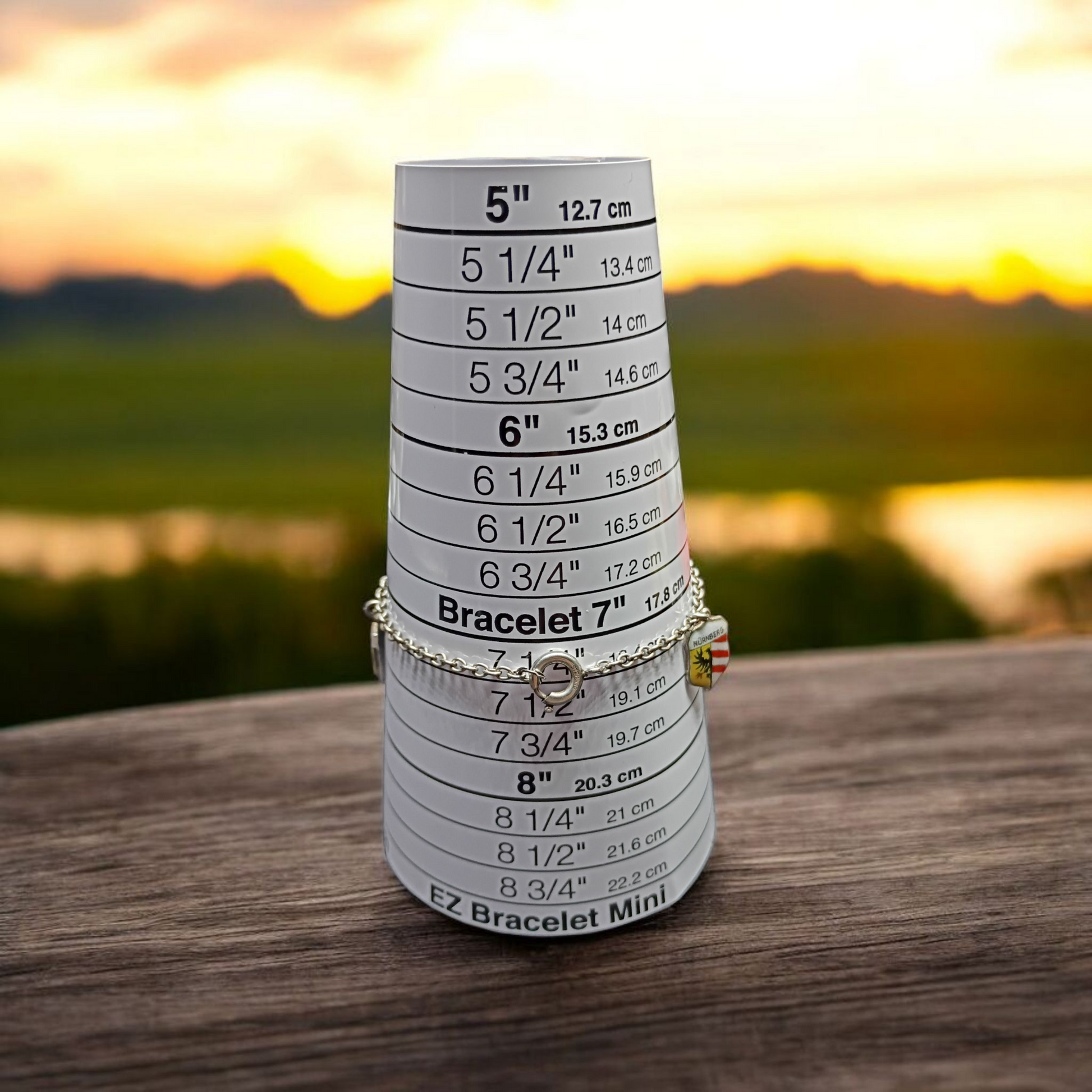 Elevate your jewelry collection with this exquisite vintage enamel European charm bracelet. Crafted from high-quality sterling silver and measuring 7.25 inches, this elegant piece features a beautiful chest charm adorned with colorful enamel detailing that adds a touch of European sophistication to any ensemble.