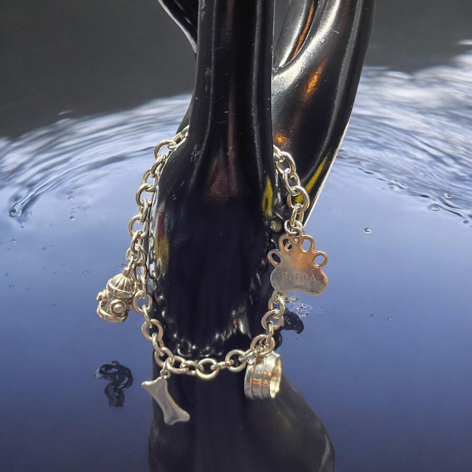 Vintage 925 sterling silver cable link charm bracelet featuring adorable dog charms. This 6.75" bracelet showcases authentic hallmarked silver construction with a sturdy cable link design that has stood the test of time. Each dog charm measures 0.5" and adds character to this timeless piece. Perfect for collectors of vintage jewelry or anyone who appreciates quality craftsmanship and canine-inspired accessories. A versatile addition to any jewelry collection.